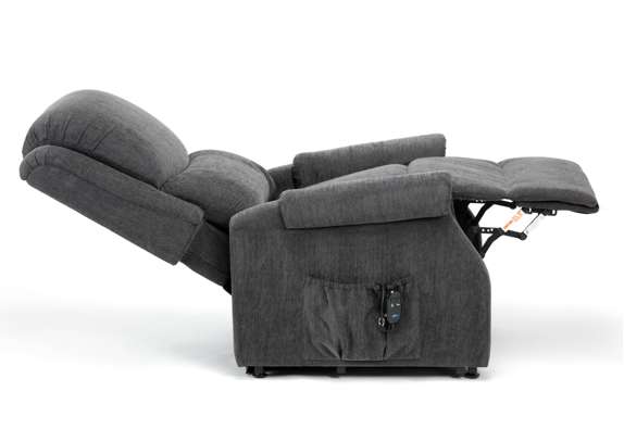 The Indi Riser Recliner is upholstered in a soft feelchenille fabric which provides added luxury and comfort. The quiet motorprovides a smooth and discreet operation, raising and tilting users to theirfeet or providing an excellent snooze position. Comfort is enhanced on theIndiana via a contoured seat and back with padded upholstery, while aconvenient side pocket is well suited for a users storage needs. The handset iseasy to operate, with only two buttons.