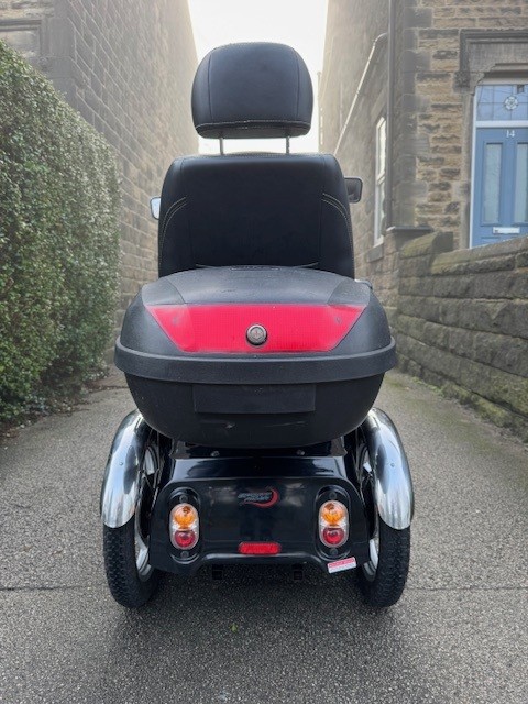 Throttle lever with automatic safe-braking system Additional Hand Brake for added security Telescopic front motorbike suspension for optimal handling Excellent manoeuvrability and turning circle for use in small areas and busy environments Trip computer with odometer for measuring distance travelled All round lighting, inc large headlight, front/rear indicators and rear brake lights to improve outdoor visibility at dusk or when dark Twin adjustable rear view mirrors for extra visibility Large accommodating footwell with anti-slip rubber mat Motorbike style wheels with modern chrome mud guards Rear bumper provides additional protection Rear anti tip wheels as standard Lap belt included for added safety Large seat back storage pocket for keeping essentials safe when out and about Anti roll back system safety device prevents scooter from rolling backwards on hills Optional lockable and removable rear pannier box